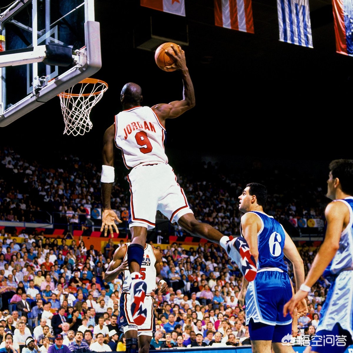 当然这种极端的气场不仅仅局限于场外,对于每场比赛的对手而言,也是不言而喻。每当看到与自己对位的是被封为篮球之神的男人,或许没有一人的脑子里还会有赢球的概念,剩下的也只有那最近距离的顶礼膜拜了。这也让MJ在整个奥运会期间,拿到了全队最多的37次抢断,意味着在他面前的球员,场均要被他断球四次之多,威慑力一目了然。