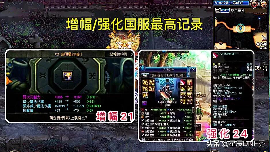 DNF游戏运营11年,每一位勇士都想拥有一把强化或者增幅最高的武器,并且为之氪金无数,但是,由于强化和增幅成功率,越到后面越低,高增幅和高强化寥寥无几,目前国服的最高强化记录是狂人缔造的“+24执行巨剑”,增幅记录是一位不知名的勇士缔造的“+21的恍惚戒指”,但是在增幅22的时候,碎掉了。