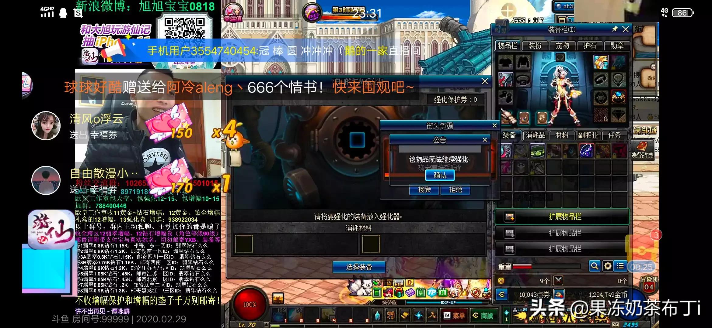 面对+31这么高强的武器,而且还拥有4件,号主也让旭旭宝宝帮忙冲击一波+32,结果不上不知道,一上旭旭宝宝也吓了一跳,31的手套强化32提升该物品无法继续强化,这还是玩家第一次见到,也就是说+31的武器就是装备强化的最高上限了,无法再继续强化。