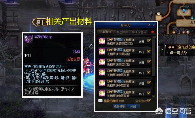 (二)第3/4/5渊,通关后会掉落一个全新的材料“冥渊的抉择”,该材料非常有用,可以在NPC处兑换100级史诗武器随机罐子。