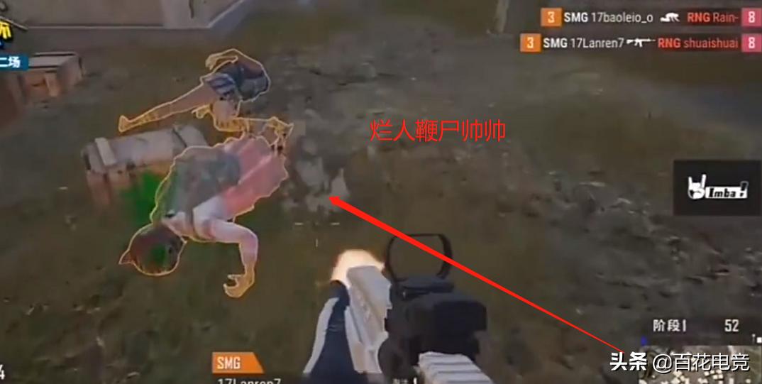 也许是出了一口恶气,(第一局SMG输后,网传P城有枪声,RNG队员鞭尸在先,事后证明RNG队员只是对天开枪)又或许是为自己正名,过于兴奋的SMG烂人在淘汰RNG最后一人后出现了鞭尸行为!