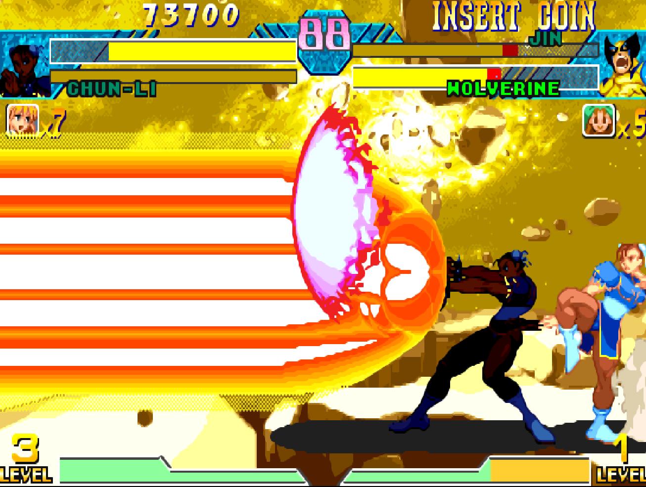 很多玩家一直分不清楚《超级漫画英雄VS街头霸王》和《漫画英雄VS卡普空》,这两款游戏的玩法非常相似,都可以打出各种逆天的合体必杀,只是游戏中的人物不同而已。