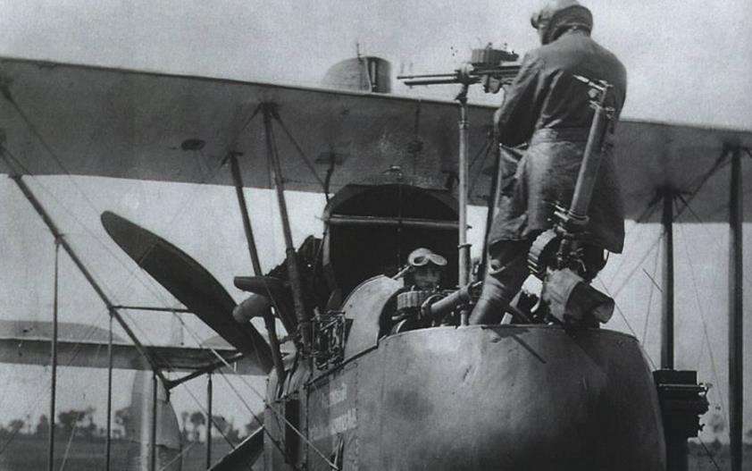 飞行员负责开飞机,射手坐在后座上负责进攻对手,还别说就加装了这么一挺机枪之后,首战就打下了德国两架飞机。