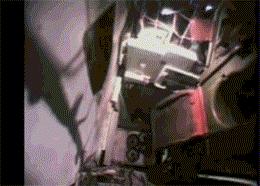 已经投入使用的自动装填机是什么样的呢?苏T-64坦克的装弹机,是定角装填,打完1发炮弹要回到4度30分的角度才能装填,如上图,显然不符合“连续开火”的要求。其后的T-72到T-90改成了平推式,就更不可能任意角度装填了。西方坦克喜欢的尾舱式自动装弹机也一样,平推式供弹,如下图。