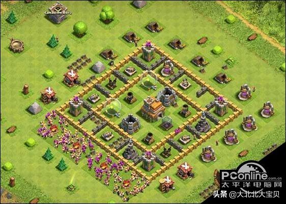 一,《部落冲突》刚上七本求一个防御阵型?还有兵种配置,谢谢啦?