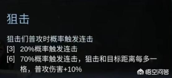 6狙击有70%概率触发连击并且离目标越远伤害则更高,每一格都能使狙击对于目标,普攻伤害提高10%