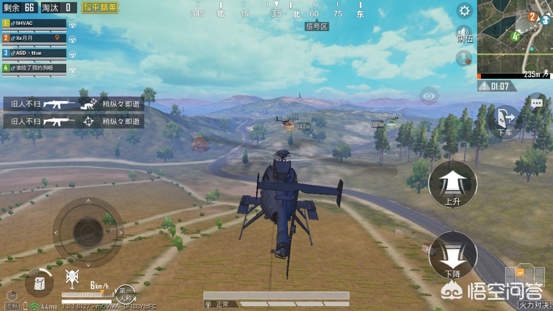至于在在游戏中驾驶直升机的感受呢,天哥觉得就如同玩家“开挂”了一般,而且直升机的高度和速度都可以自己来控制上升与下降~或许各位小伙伴到了此时会忍不住的想,在开局之后选择“军事基地”为落地点,迅速找到直升机然后在天上一直飞,等到决赛圈的时候再降落,这样岂不是可以在该模式中成为“无敌”一般的存在了吗?好吧,只能说理想很丰满,实际情况却并非是大家想象中的那么简单!