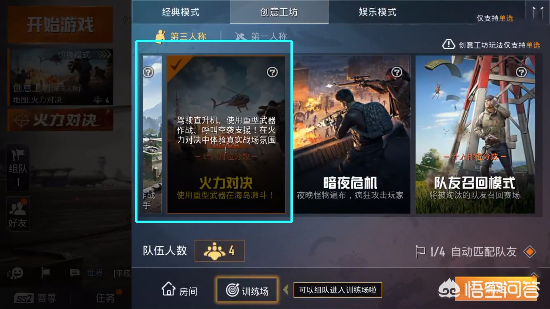 1. 新模式:大厅点击切换模式,选择创意工坊——火力对决;