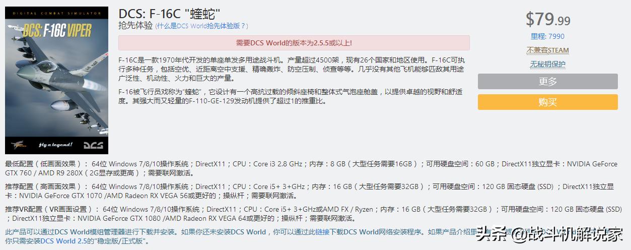不过价格嘛实在不怎么亲民,每一款飞机是一个单独的DLC,得买了才能玩,F-14是79.99美元。