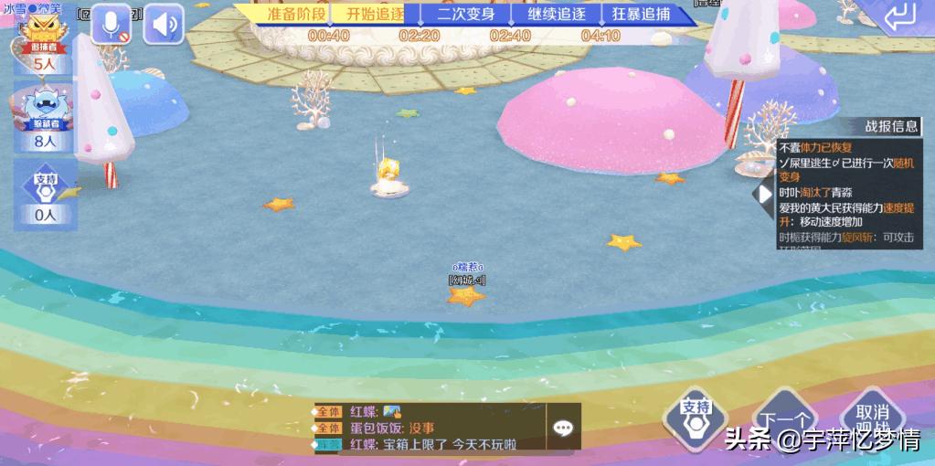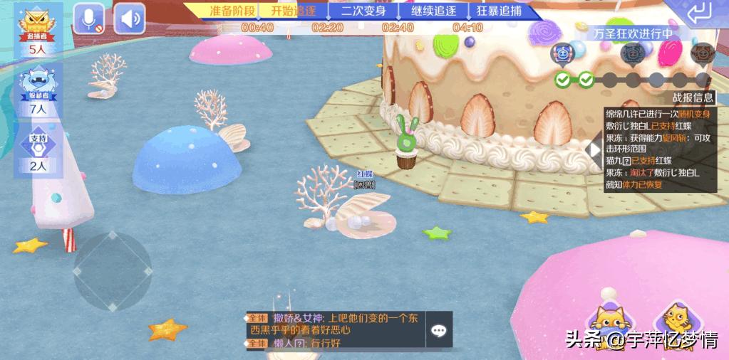 第一个无敌点,就是海滩上的圆形蛋糕。圆形蛋糕相当于一个掩体,而且,周长足够大。如果有两个一下追捕者接近,而你变成的恰好是可以融入海滩的物品(贝壳、珊瑚、海星等),你可以绕着圆形蛋糕,尽量避开追捕者的视野。这种操作比较险,但很奏效。