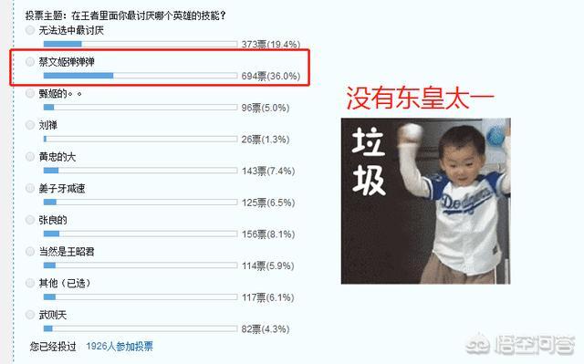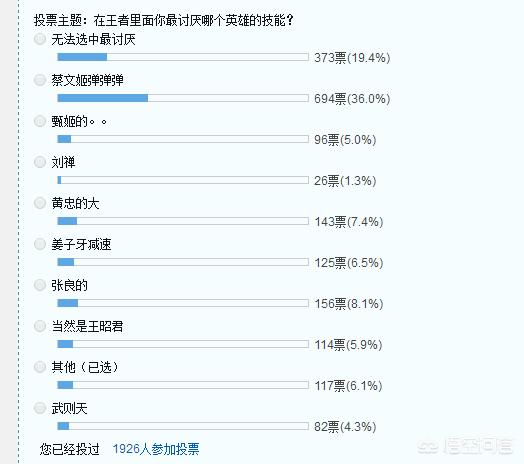 大家好,我是格叽!近日,网友票选王者荣耀中最让人讨厌的英雄技能,近两千人投票,几乎有四分之一的票数给到了“蔡文姬弹弹弹”,也就是他的二技能,而王者峡谷制裁能力最强的东皇太一居然没有上榜,这点让我很诧异。