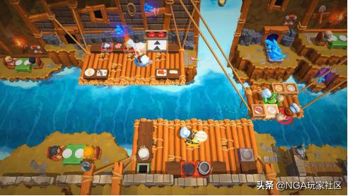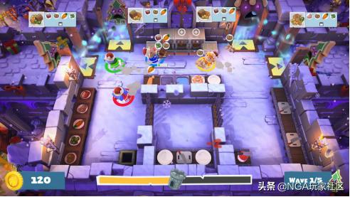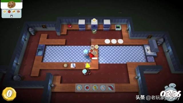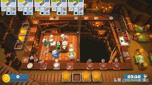 关卡中的两个人其实还并不算混乱,当出现四个人的时候。切菜的可能跑去洗碗了,拿菜的可能跑去煎锅了,满场乱跑撞人不说,有的地形还把你直接装下去,做好的餐废了,还有更可怕的胡乱丢菜,胡乱配餐导致扣分。