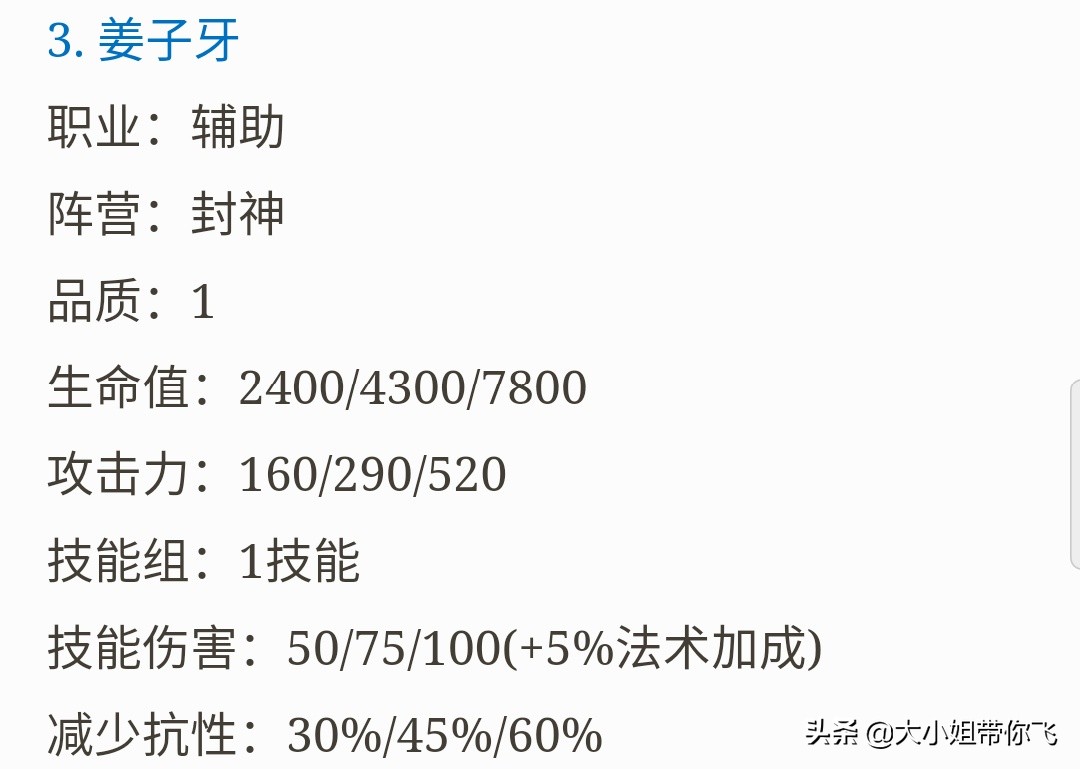 一级品质辅助职业,技能组是一技能,看到这个一级品质,我估摸着姜子牙在模拟战里面怕也是免不了演员英雄这一称号了,唉,可怜了。