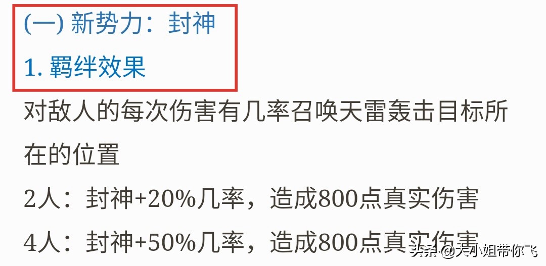 封神的羁绊只有2/4英雄两层羁绊,第一层的每次伤害有20%几率能对敌人造成800点真伤,第二层则有50%,所以玩这个阵容的话还是叠到第二层更为犀利啊。