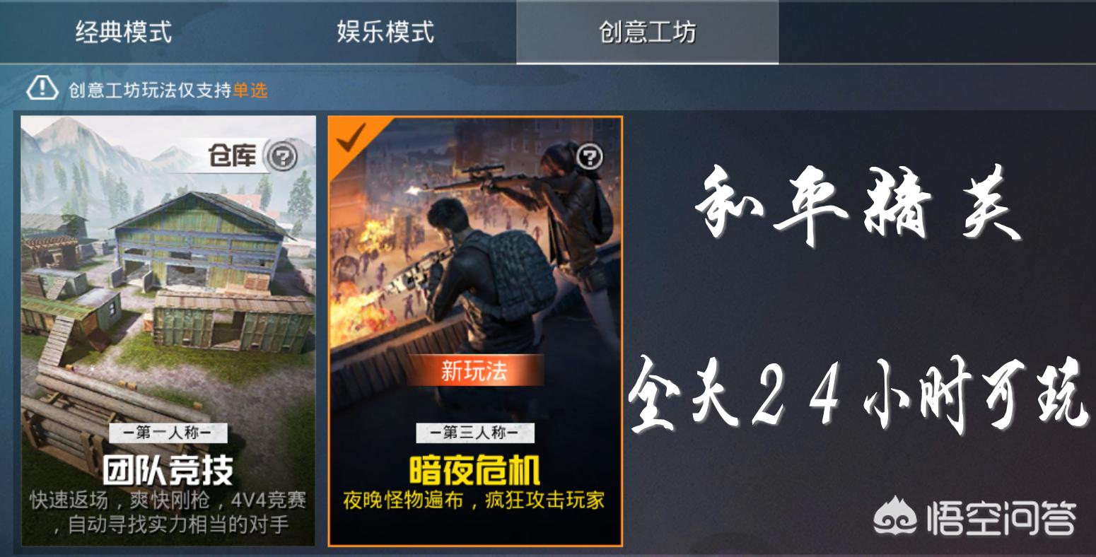 模式不同。和平精英只有‘暗夜危机’模式,而亚服《刺激战场》有‘暗夜将至’、‘至暗之夜’两种僵尸模式。