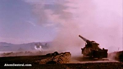 这种炮是唯一进行过核实射的原子炮,1953年的“结果-节孔”行动中,原子炮的首射,一发带w-9 280mm核弹从炮膛中射出,几十公里之外顿时升起巨大的蘑菇云,其威力相当于广岛原子弹的当量四分之一。