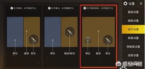 第四步进行操作设置,如果不使用自定义面板的话,建议使用第三种左手固定移动,右手固定开火,防止误操作,,比较熟练的玩家推荐中间的,灵活性比较高,如下图所示: