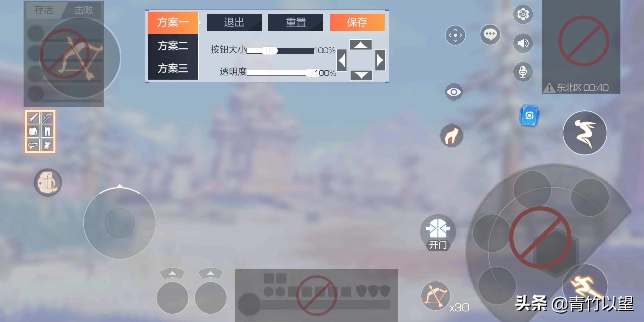 1、进入设置找到自定义方案,把你的射箭攻击键调到你满意的位置和大小。