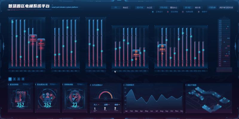 当发生电梯运行数据超限时状态时,系统将根据应急预案流程自动告警至有关部门,并对故障现场进行追踪和回放,为管理者救援指挥提供科学的决策依据。可视化监管实现关键路径自动巡检,重点区域快速锁定,杜绝冲顶、断绳、触电、轿厢对重蹾底等事故的发生,为园区高效安全运维奠定坚实基础。