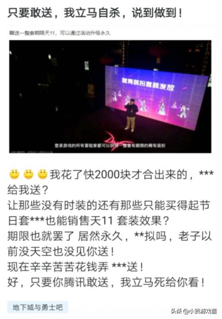想必前段时间在网上说天11免费送,就去“自杀”的哥们,这次估计怕是不会去“自杀”了,这次会不会先去找策划谈谈感情啊。