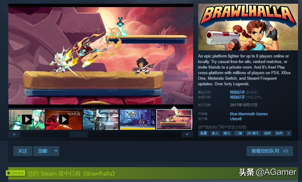第二款,格斗挑战brawlhalla4,这是一个免费的横版格斗类游戏,爽快的打击感,和大量的人物选择,绝对让你玩到爽,缺点就是服务器不太好