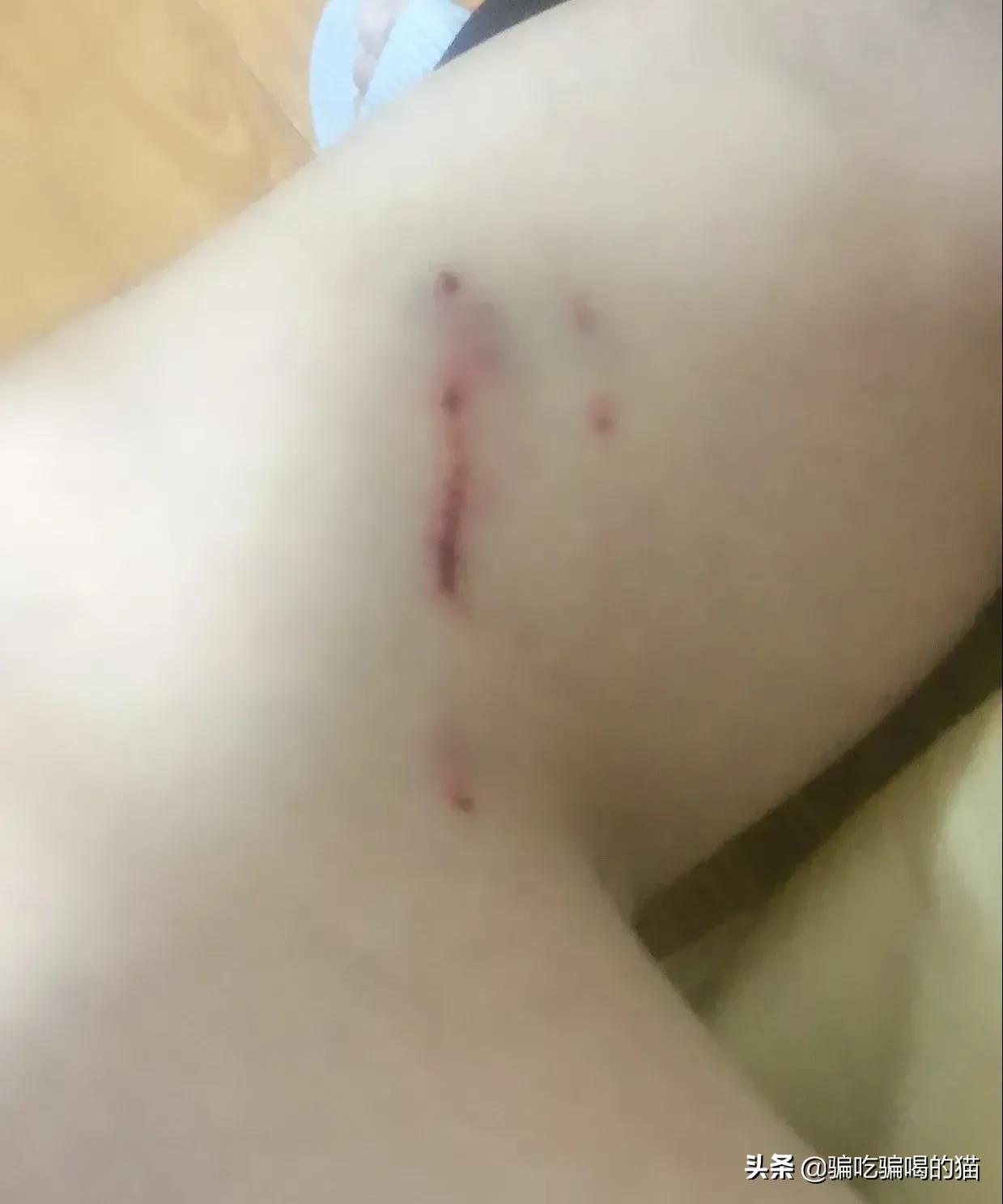 如果猫咪是第二种情况,那么铲屎官就惨了,很有可能会变成像我这样(请看图)所以撸猫前要做好调查,猫咪是啥性格,尽量不要强撸,强撸有受伤的风险。如果忍不住一定要撸,准备好猫条。猫条在手,天下没有撸不到的猫。