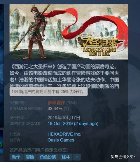 同时,游戏版《大圣归来》中国区售价199元,被玩家评定为“超A级”。发布平台也是国际一流的PlayStation平台和Steam平台。