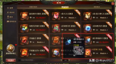 魔域8阶兽魂晶石在哪里打的?(魔域6阶兽魂晶石副本在哪里) 二毛 2024-08-06 00:21:58 555 一,魔域8阶兽魂晶石在哪里打的?七阶兽魂石至九阶兽魂石的获得方式打跨服竞技场:跨服竞技场段位需要上“黄金战将”才可以领取高阶兽魂碎片。荣誉值兑换商店数量:七阶兽魂石:20个高阶兽魂碎片=1000/20000荣誉值八阶兽魂石:28个高阶兽魂碎片=1000/28000荣誉值九阶兽魂石:32个高阶兽魂碎片=1000/32000荣誉值。 七阶兽魂石、八阶兽魂石、九阶兽魂石更简便花魔石获得就是”神秘商店“用魔石购买。二,魔域八阶兽魂晶石怎么获得八阶是打不出来的, 神秘商店有卖的哦,七阶王者宝库可以抽到, 1-6魔石商店买原石 合总结:以上内容就是赳赳手游提供的魔域8阶兽魂晶石在哪里打的?(魔域6阶兽魂晶石副本在哪里)详细介绍,大家可以参考一下。