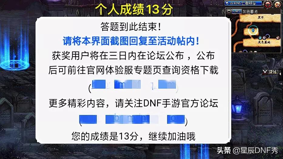 见到可以获取体验服的资格,我也是第一时间参与了这一次的答题邀请活动,如图所示,经过一番挑战,最后得分为13分,看来,自诩为11年老玩家的秀儿,也是很多题不会啊!很明显,第二天的官网公布没有中奖,刚刚又去答了题,期待获取体验服的资格。