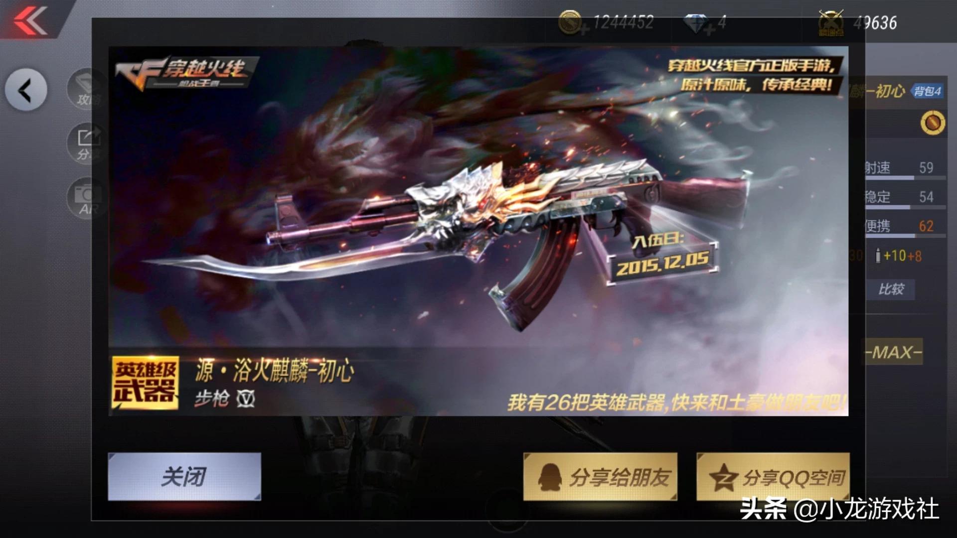 源火麒麟当然没法和火麒麟比但是用起来手感还是不错的,这把枪还有一个特别的地方就是枪身刻有当初“入伍”时间我的是2015年12月5号算得上一名老玩家了!