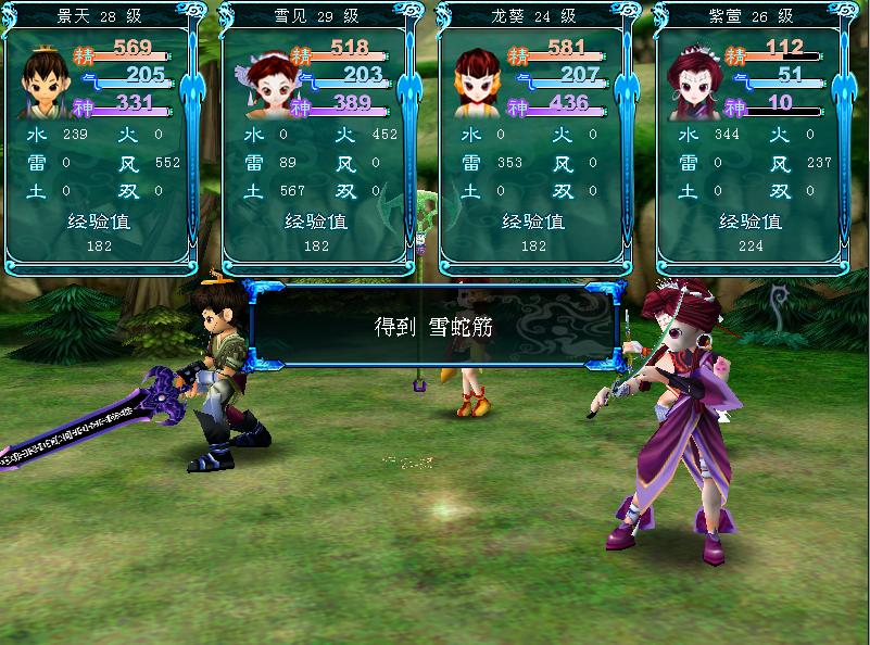 连环破斩:景天风位,雪见土位,景天使用酒金笺