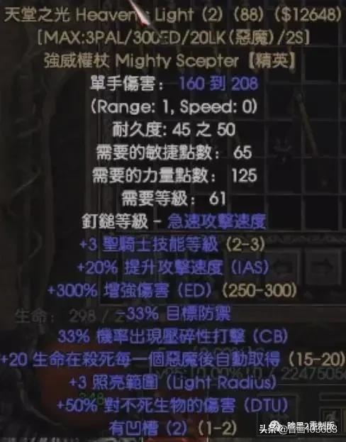 另外,角色穿戴的装备属性里面有“增加某某几率获取魔法装备”,也是不错的属性,会使角色刷到黄金、暗金装备的几率更大。