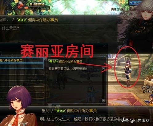 1.首先,我们要在赛丽亚房间找到里贝,和她对话触发佣兵中介所任务。