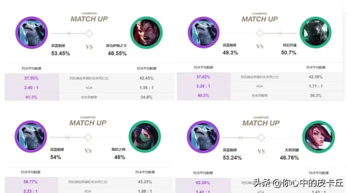 如果只是打服这两位英雄,并不能称之为最强上单,丹姐也去看了一下狗熊与其他上单的数据,发现基本上单杀率都是比狗熊低的,向对线出了名强的强的剑姬更是被他给完虐,还有对线强的阿卡丽也是如此,除了对线之外,整体胜率也是狗熊更高,毕竟控制非常足,在团战中也能够打出非常不错的效果,这些数据都是取之于韩服白金以上,很少存在不会玩的情况,不过可惜的是许多人都不知道狗熊的强大,所以狗熊的出场率不像这几位一样高。
