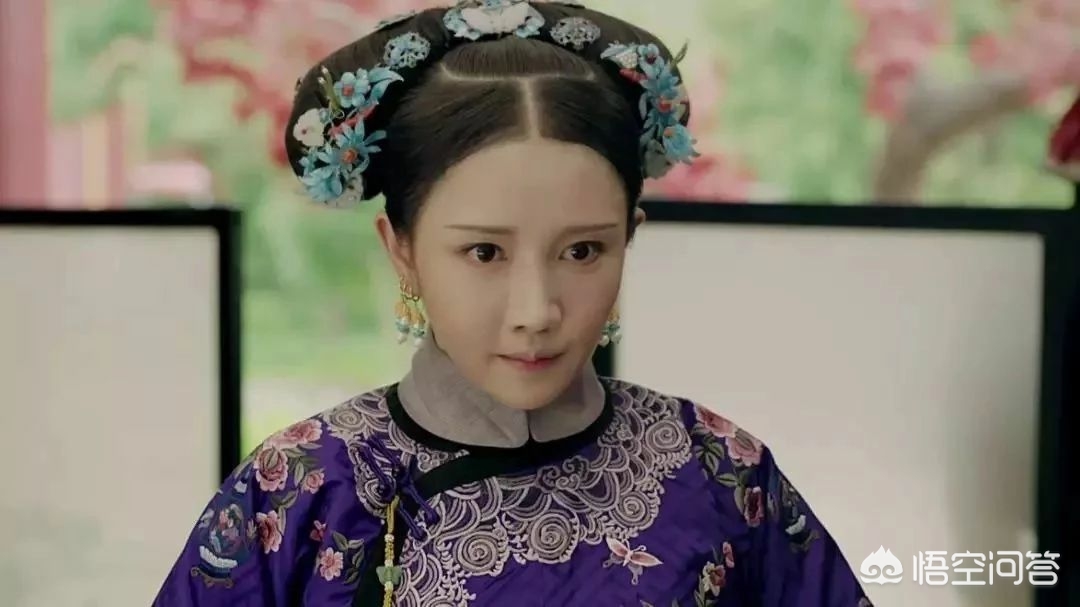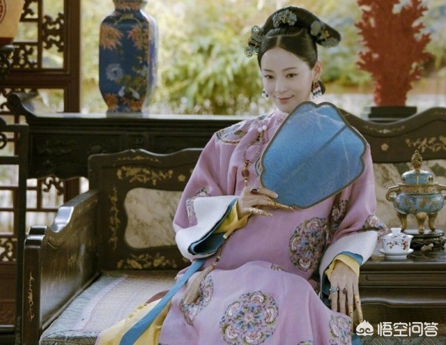 纯妃,历史上的纯惠皇贵妃。纯妃手持蓝色罗布团扇,媚眼如丝,巧笑间的欲遮还休,更显风情,美得让人挪不开眼。