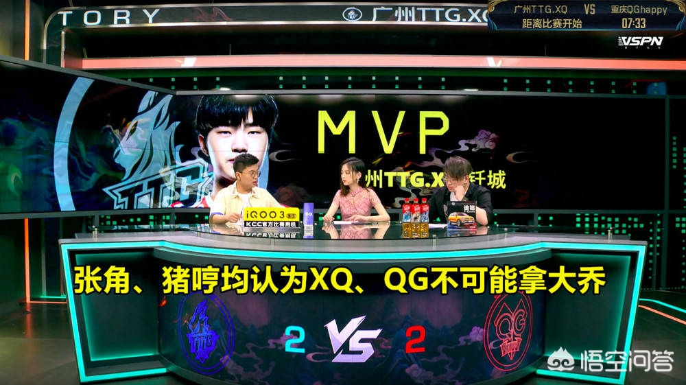 在双方巅峰对决阵容公布之前呢,时间会给到评论席的嘉宾,让两位嘉宾去分析一下双方可能会选择的阵容。而张角跟猪哼虽然很多意见不统一,甚至因为一些观点争得有点面红耳赤,但是有一个观点他们是一致的。那就是XQ跟QGhappy这两支队伍都不会拿大乔体系。但结果就是,QGhappy拿了大乔体系!