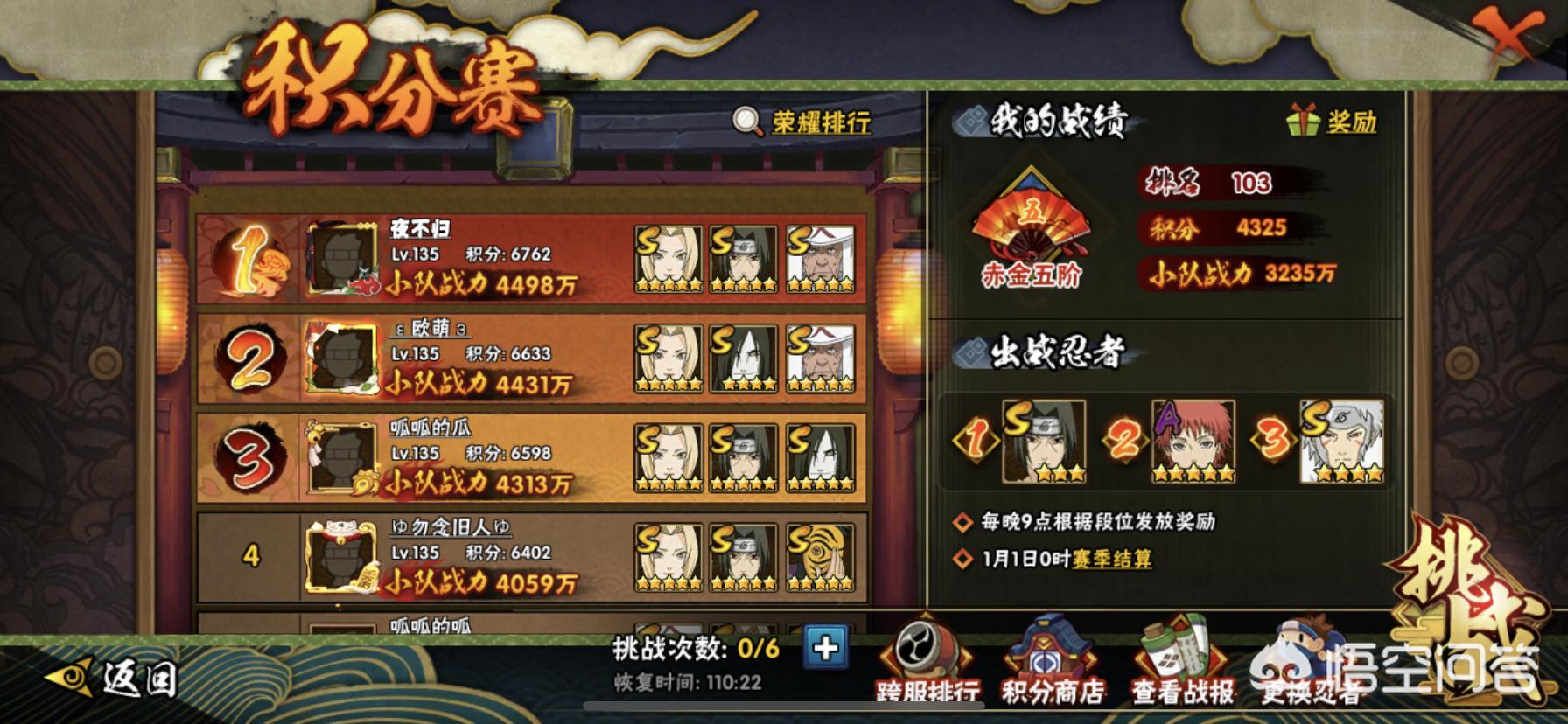 积分赛看忍者 还有就是暴击在积分很厉害得 我生命攻击防御都比好几个高几万就是打不过
