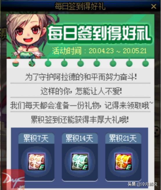 DNF4月15日体验服上线后更新了4.23-5.21的每日签到活动
