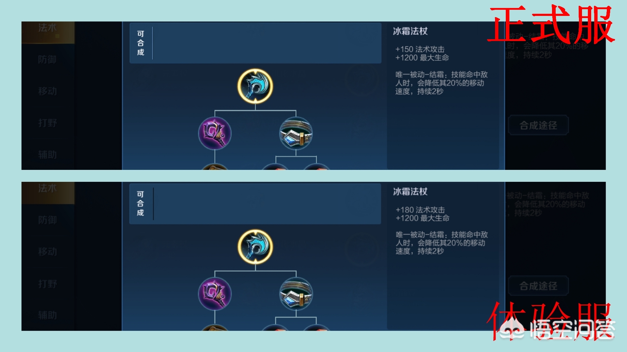 此次调整为增强,增加了法术攻击,由150上调至180。冰霜的减速效果是法术装备里的佼佼者,对于法坦、法辅这样的英雄而言是非常好的装备,此次的攻击上调应该会对于法坦、法辅有所帮助,而对于目前的大多数法师而言影响不大。