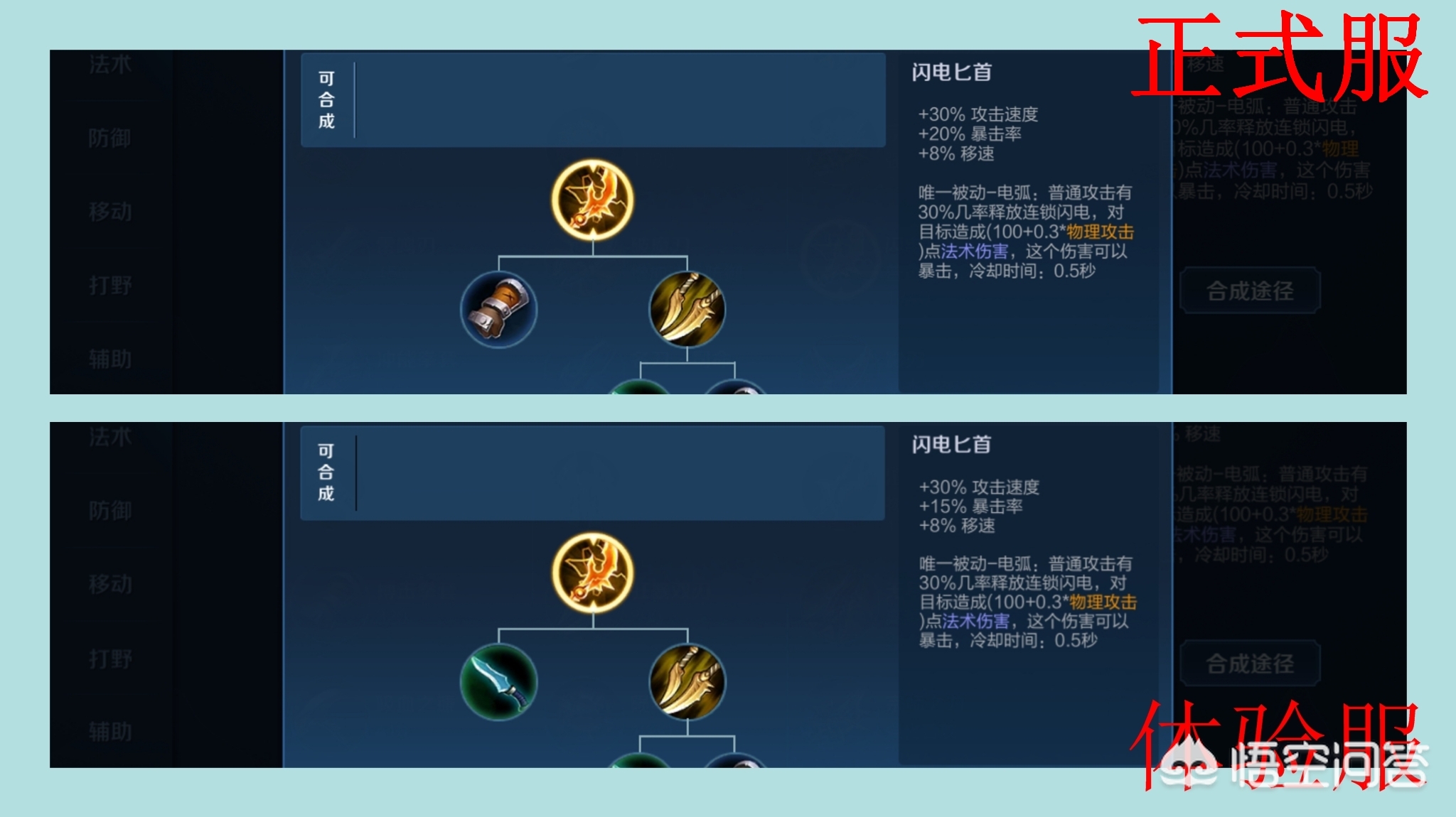 此次调整中,改变了电刀的合成途径,并降低了暴击率,由20%下调至15%。电刀对于现版本的大多数射手而言,通常是必出的一件装备,除了被动的爆发外,对于基础属性的暴击率要求也是蛮高的,此次暴击率的下调对于射手而言多少有些英雄。