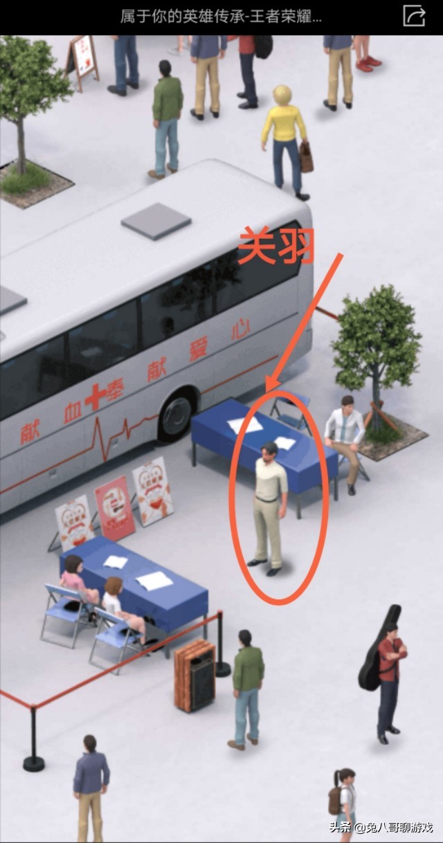 - 关羽的位置最容易找到,在地图中全景模式下找到献血车就能找到关羽。