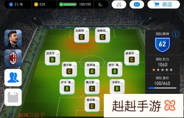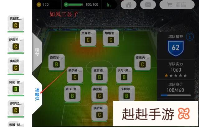 3 点击之后玩家就能看到首发球员的状态了,A代表球员状态出色、B代表球员状态一般、C代表球员状态比较差。