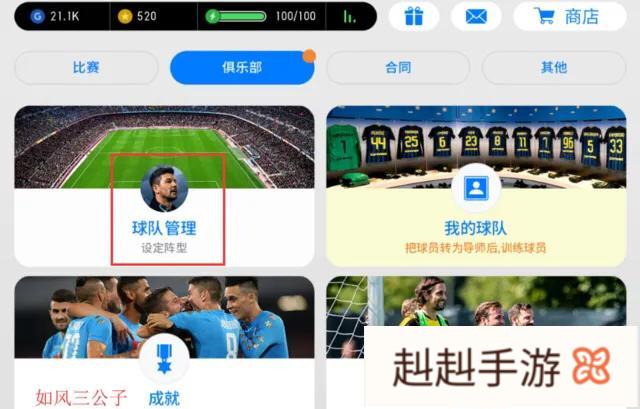 1 玩家想要查询球员的状态,首先点击【俱乐部】→【球队管理】按键。