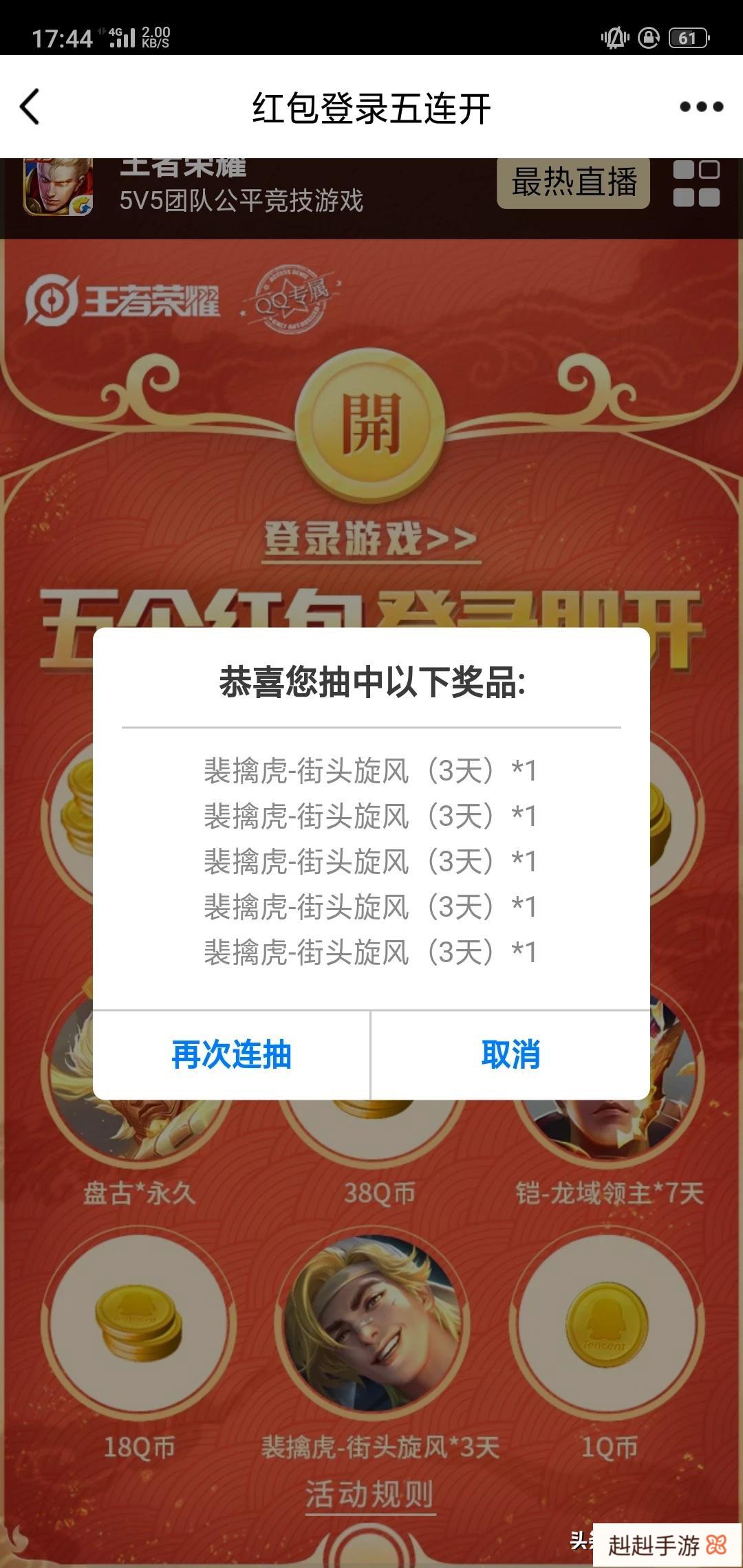 不过话又说回来,只需要登陆一次游戏就可以抽奖,也不需要你干啥,虽然能猜到一般都是体验卡,但是白给,而且留着等体验卡兑换的时候还能再换其他皮肤体验卡,我认为怎么来说都是不亏的。如果人品爆发获得了q币,那就更赚了