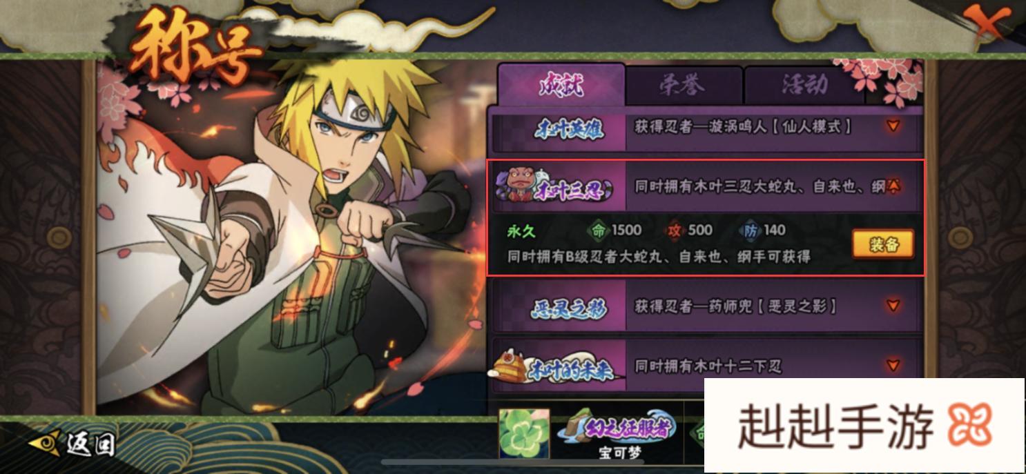 火影忍者手游中同时拥有大蛇丸、自来也、纲手三位S级忍者,可以获得什么称号?