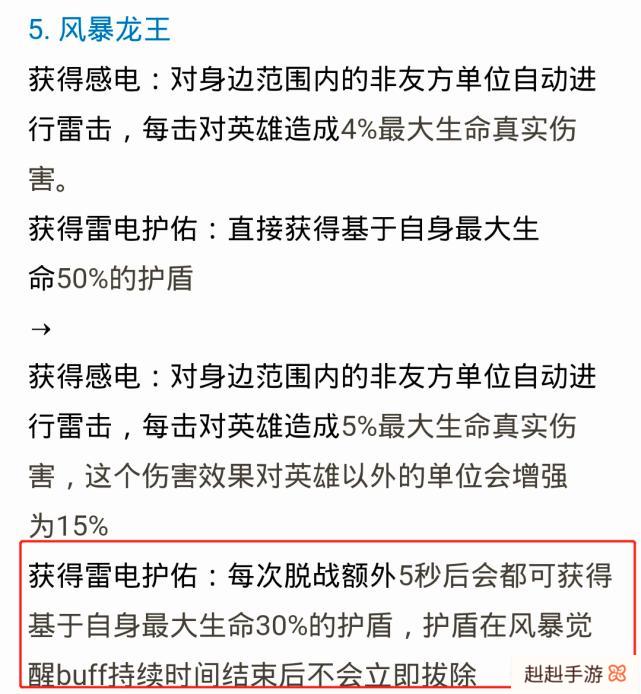 风暴龙王刚上线体验服时叫风暴暴君,属性经过一次全面升级之后才改名为风暴龙王。而这一次风暴龙王属性又再次改动,变得更强,变得更容易终结比赛。当前版本风暴龙王的属性确实算可以,但是别忘了打风暴龙王的代价有多大,相比于代价,其实这属性有时候甚至还不如一条黑暗暴君的属性加成。而且风暴龙王属性最关键的一点是给击杀的一方50%的最大生命值护盾,但是这个护盾并不是永久的,是一次性的。遇到一些poke能力比较强的阵容,这护盾别说拿来强行冲水晶了,在对面没有减员的情况下,可能连高地都上不去。