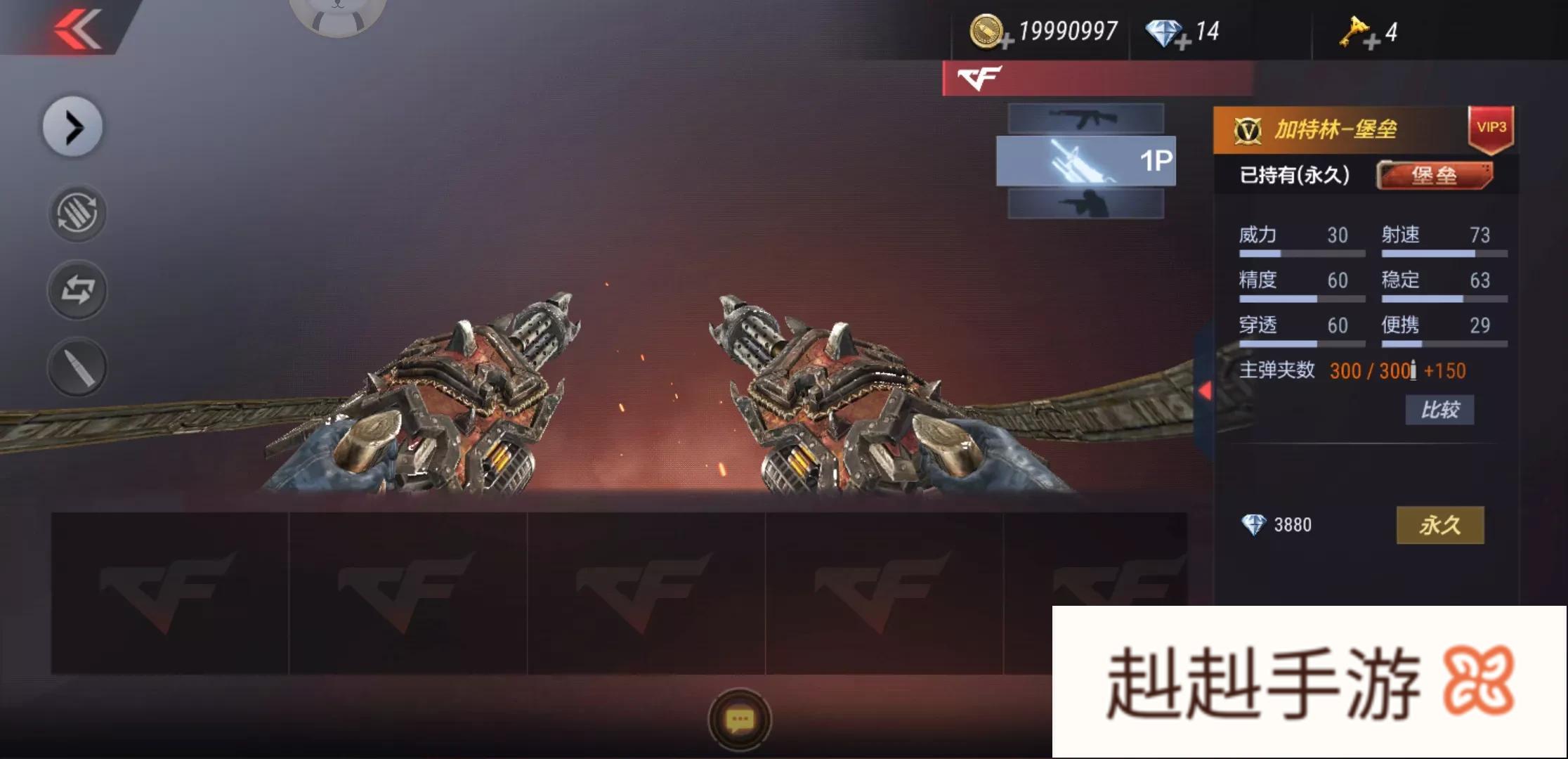 2)再者就是加特林堡垒,这款武器是挑战中唯一一个不需要手动操控,直接把它放在地上就能自己追踪敌人,不需要自己在手搓瞄准了。但是我建议在用堡垒时配一个沙鹰飞电,因为飞电后备弹夹无限,刷怪也是杠杠的。
