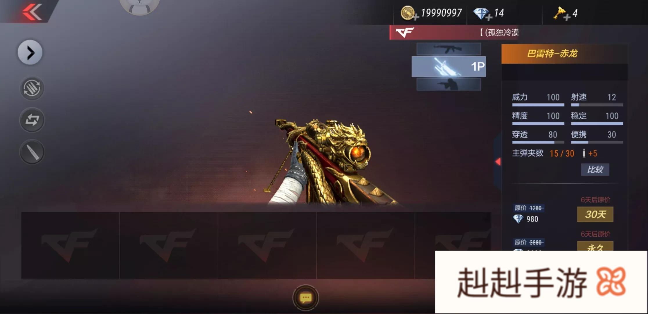 5)巴雷特赤龙,听到巴雷特基本上都明白这把枪的实力了吧。作为巴雷特系列里面的佼佼者,巴雷特赤龙在威力大的同时,稳定性也得到了提升,切枪的速度也有明显的提升。是狙击玩家的不二之选。