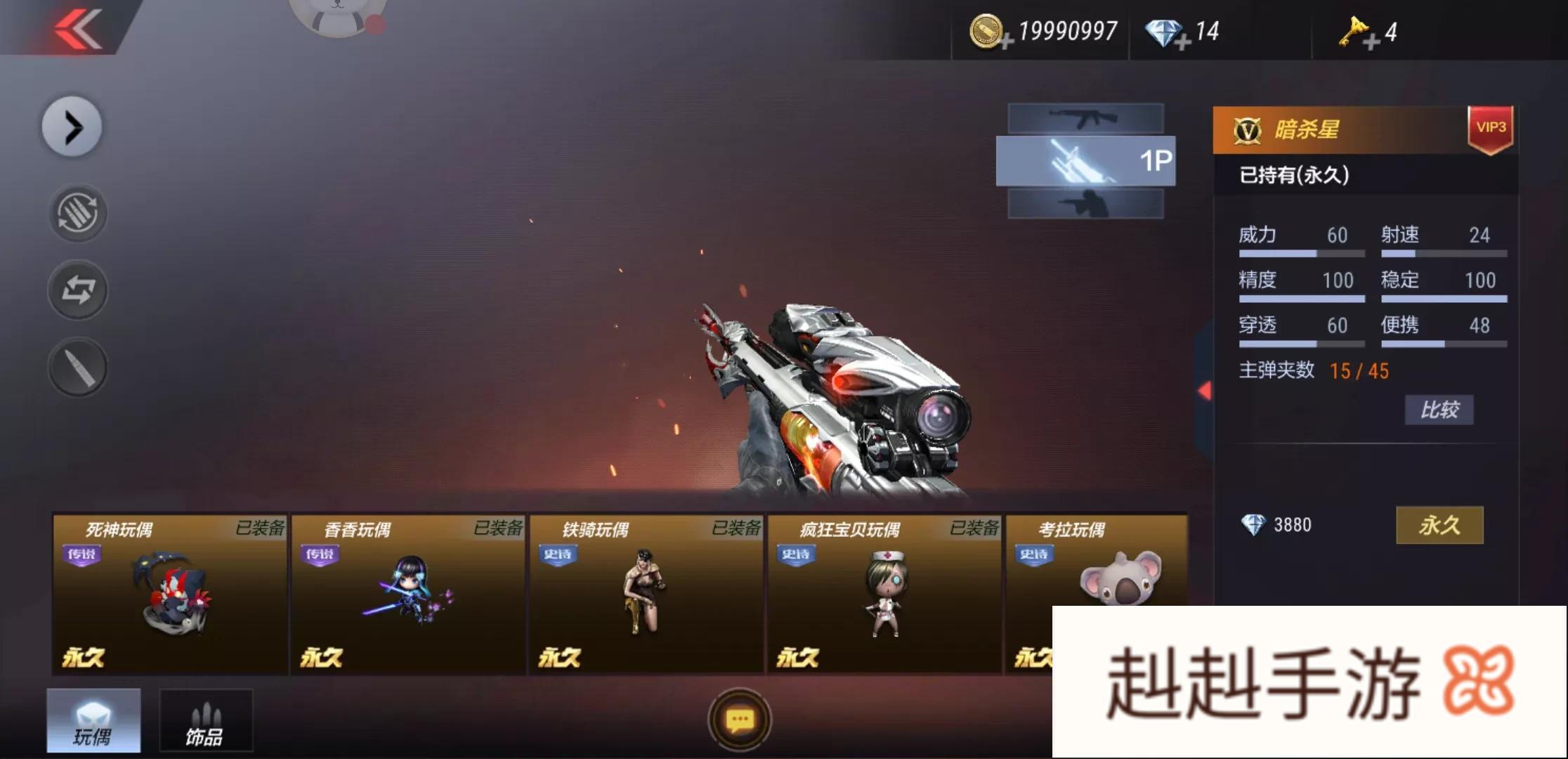 1)首选就是暗杀星这款武器了。作为手游中一款挑战无需开镜的武器,在近距离还是远距离都是发挥出色,因为本身就是狙击枪的缘故,威力也是巨大的。