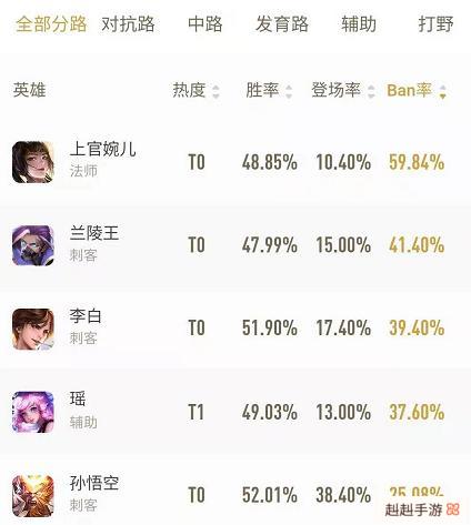 兰陵王有多强?先看看他的BAN选率就知道了,兰陵王41.4%的BAN率仅次于上官婉儿。钻石星耀局都能打出碾压的效果。